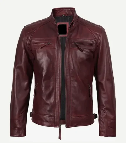 Biker Style Burgundy Leather Jacket