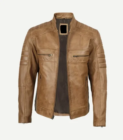 Biker Style Brown Leather Jacket