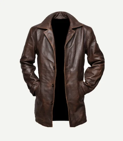 Mens Brown Leather Duster Coat