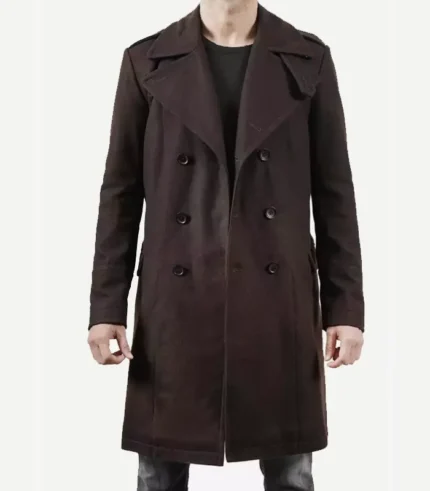 Mens Dark Brown Double Breasted Wool Coat