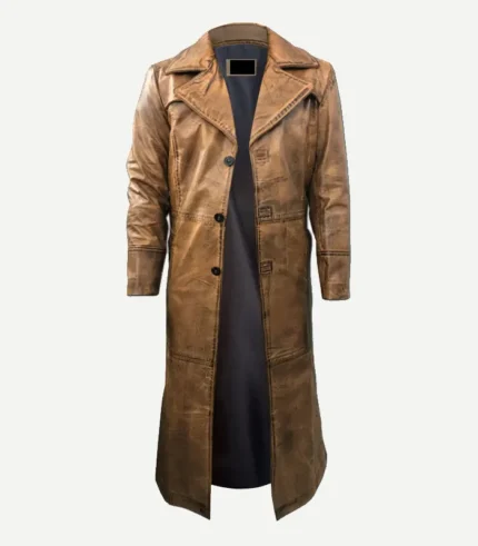 Mens Leather Duster Trench Coat