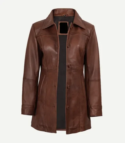 Womens Cognac Leather Car Coat