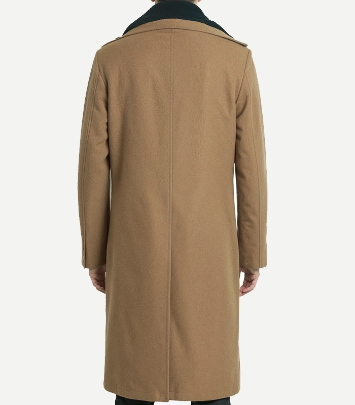 Mens Camel Brown Long Shearling Wool Overcoat