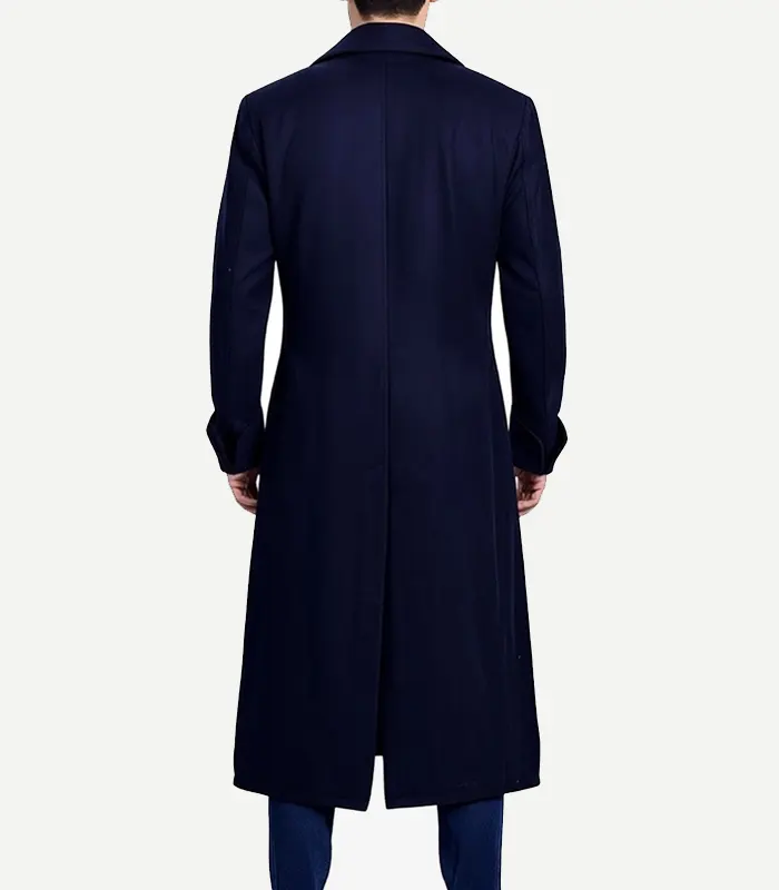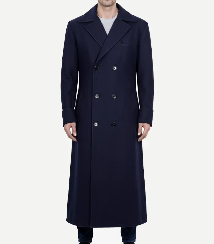 Mens Dark Blue Double Breasted Wool Coat