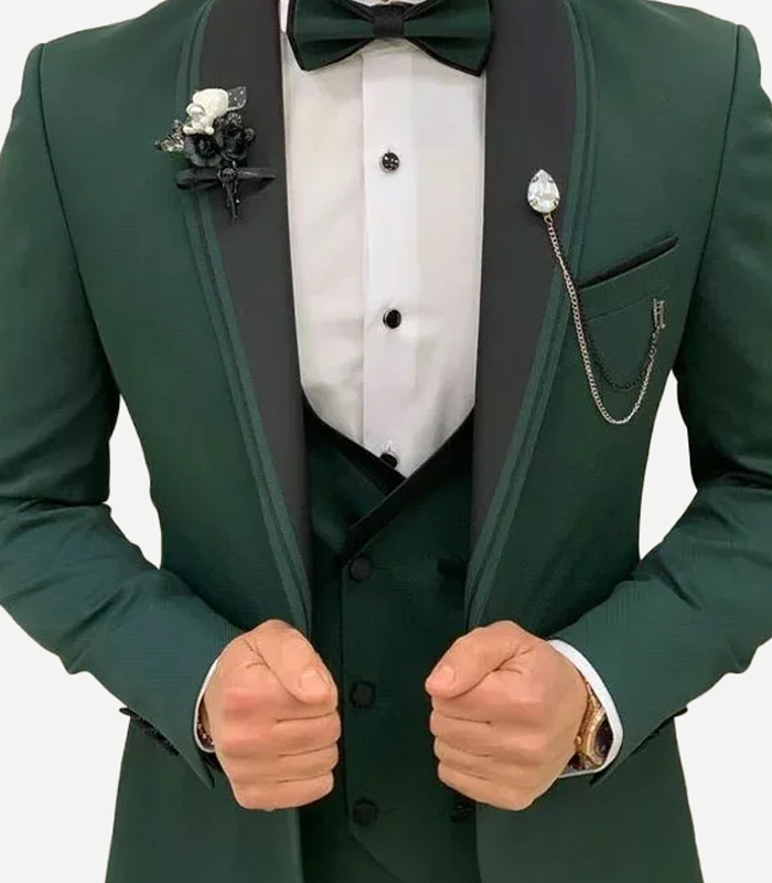 Mens Slim Fit 3 Piece Dark Green Wedding Suit
