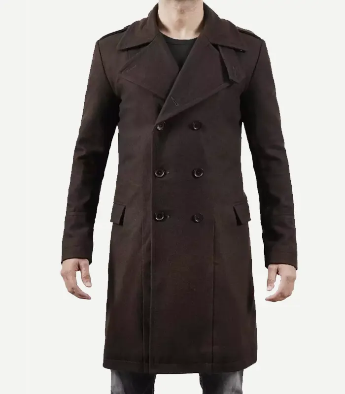Mens Double Breasted Chocolate Brown Wool Coat