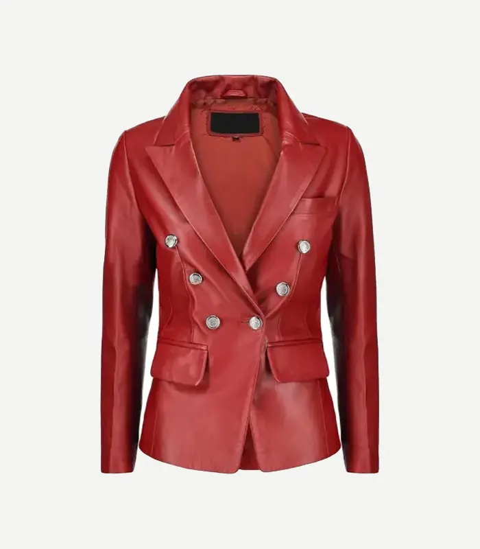 Be the first to review “Womens Double Breasted Red Leather Blazer” Cancel reply