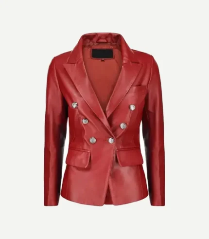 Womens Double Breasted Red Leather Blazer