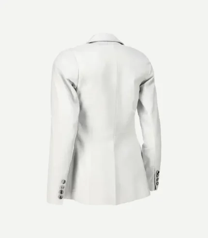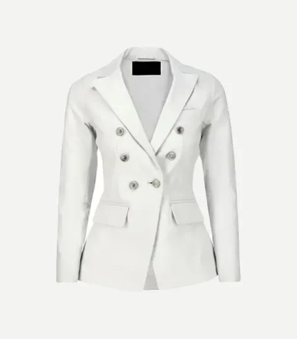 Womens Double Breasted White Leather Blazer