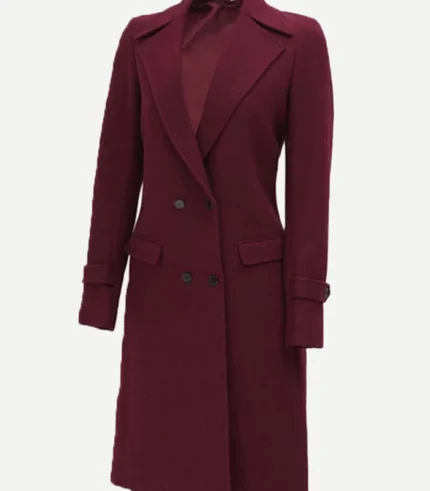 Doris Women’s Double Breasted Maroon Wool Coat