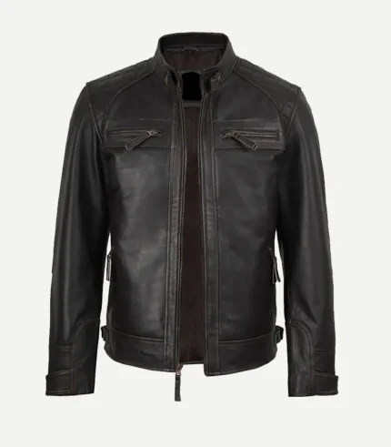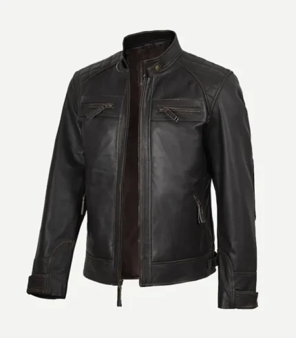 Distressed Brown Biker Style Leather Jacket