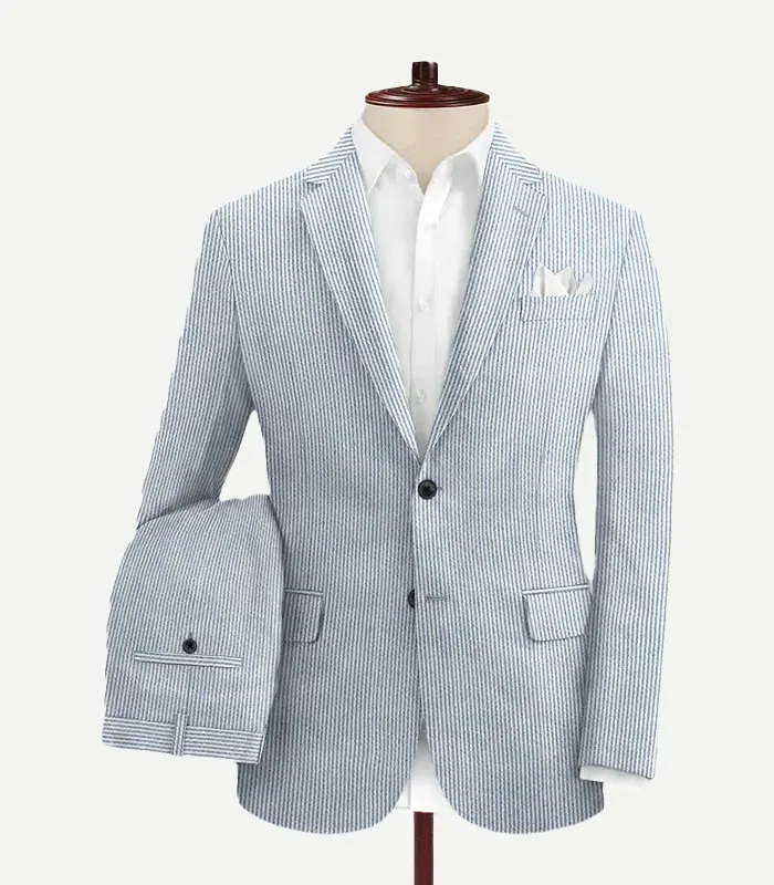 Blue Seersucker Style Suit Stripe Design