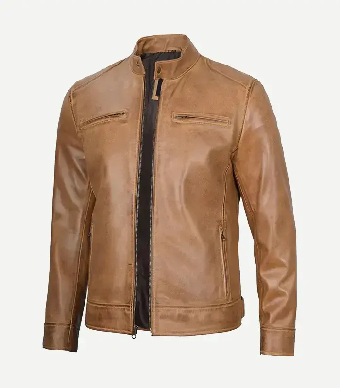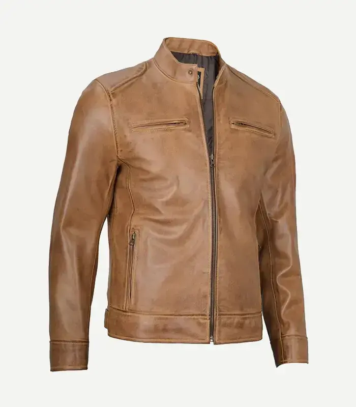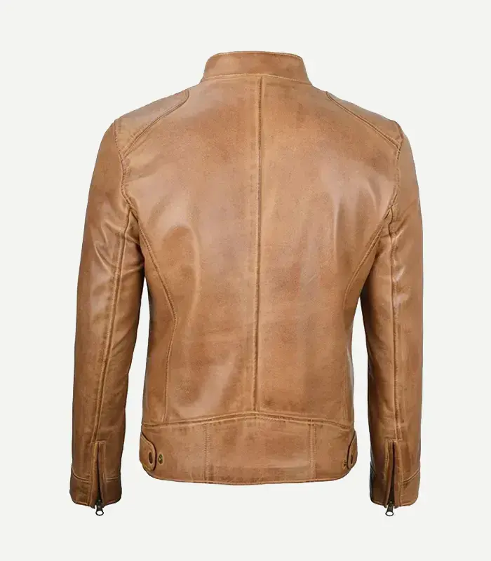Rub-Off Camel Brown Cafe Racer Leather Jacket