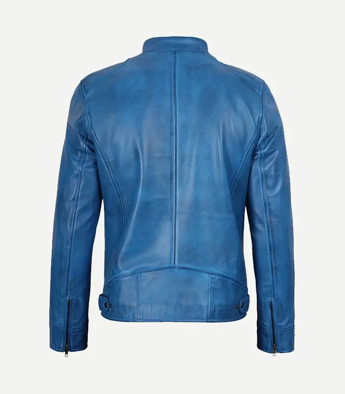 Distressed Blue Biker Style Leather Jacket