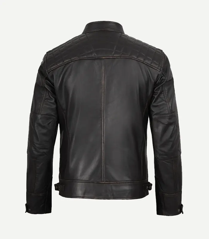 Distressed Brown Biker Style Leather Jacket