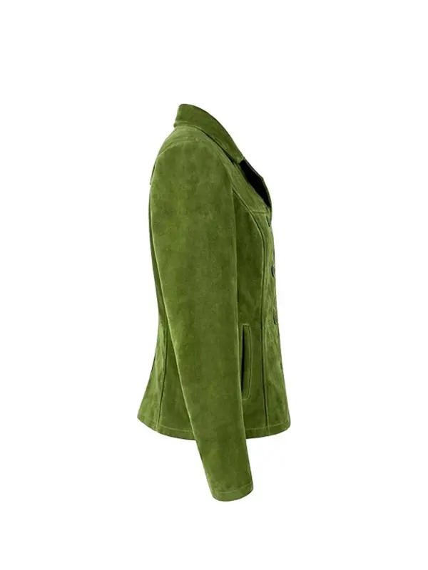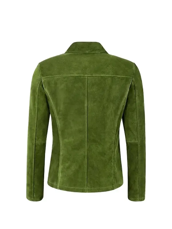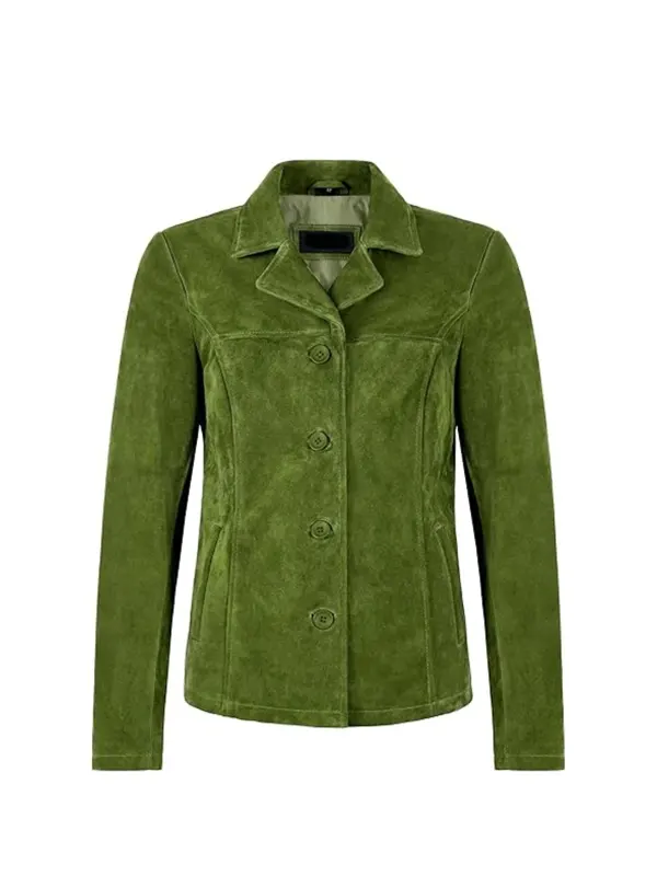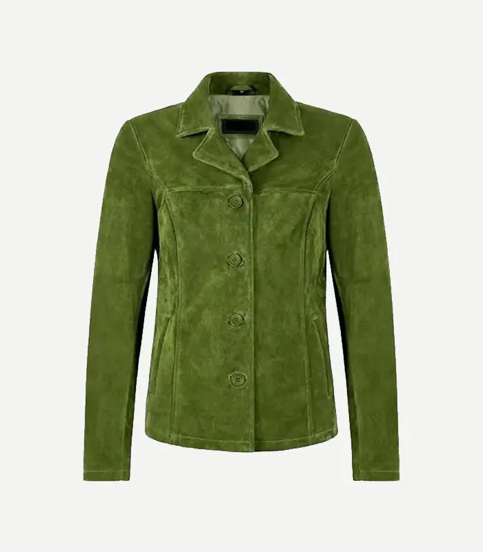 For Women’s Blazer styling, this blazer has a polished, fashion-forward look. A women’s green suede blazer is beautiful over a satin top, fitted dress, or even a plain knit. Also, the green suede blazer women’s fit enhances streetwear with a tailored contrast.