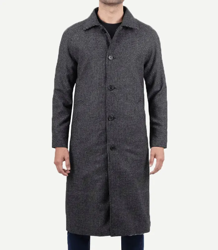 Lynwood Shirt Collar Long Wool Coat Grey For Men