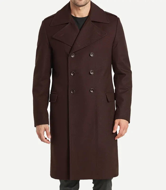 Mens Dark Brown Double Breasted Wool Coat