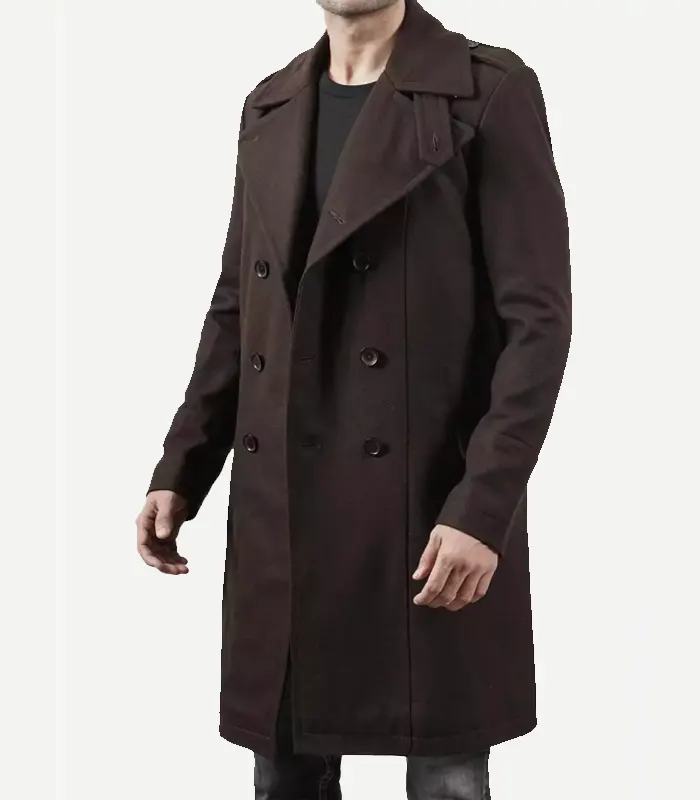 Mens Double Breasted Chocolate Brown Wool Coat