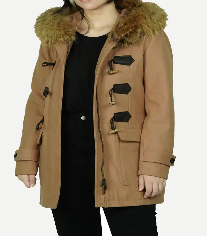 Chic Camel Wool Duffle Coat for Women