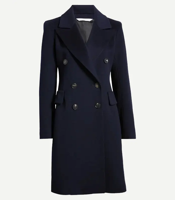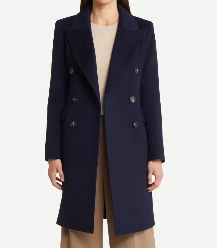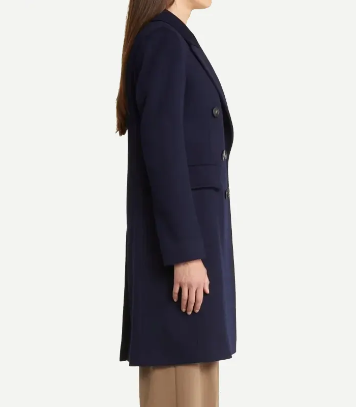 Women’s Classic Navy Blue Double Breasted Wool Trench Coat