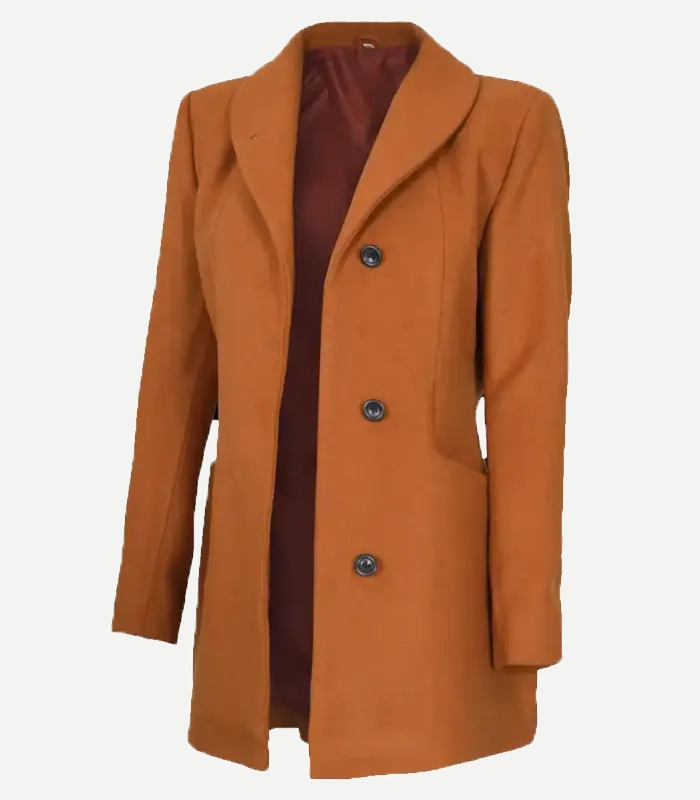 Elegant 3/4 Length Rust Wool Coat for Women – Rust Wool Overcoat