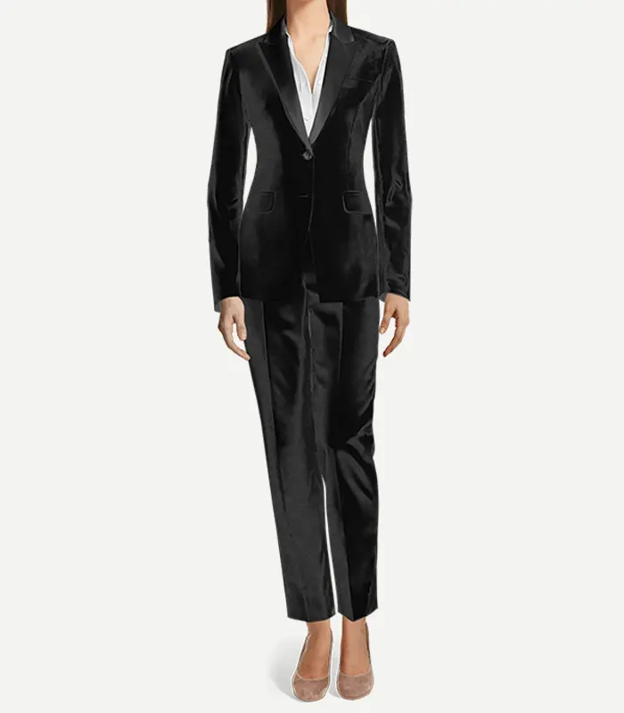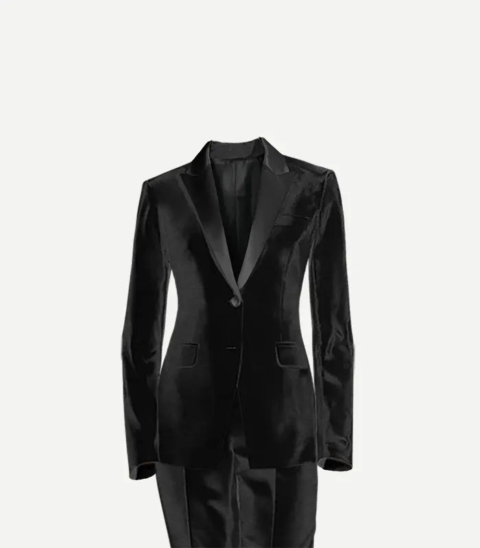 Womens Black Cotton Velvet Tuxedo With Peak Lapel Collar
