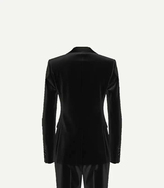 Womens Black Cotton Velvet Tuxedo With Peak Lapels