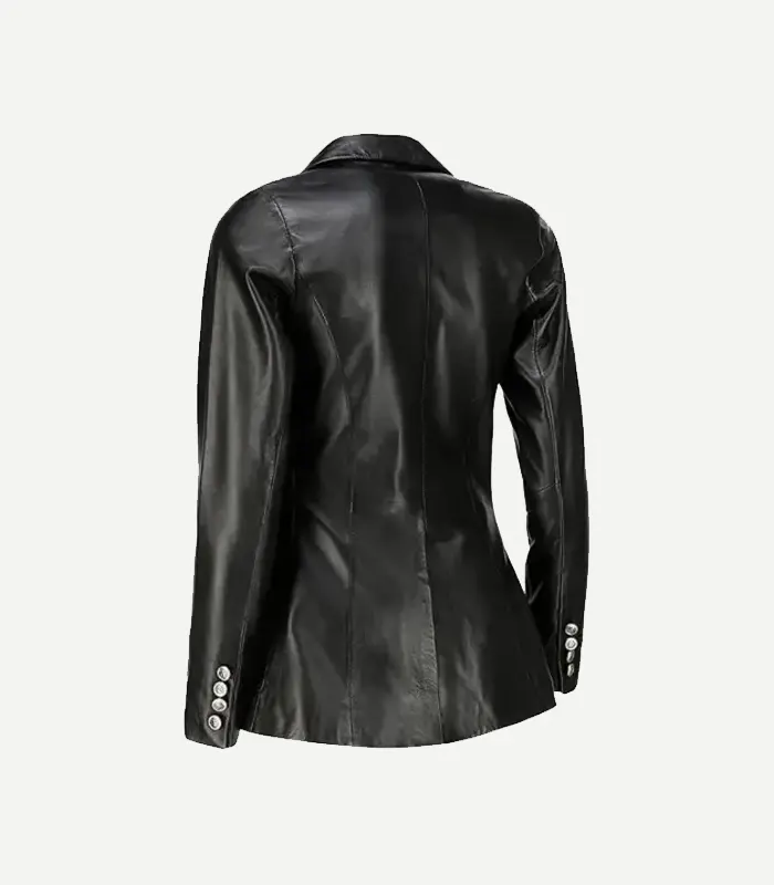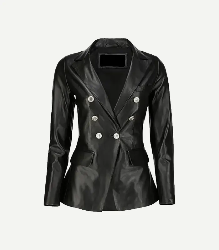 Womens Double Breasted Fancy Black Leather Blazer