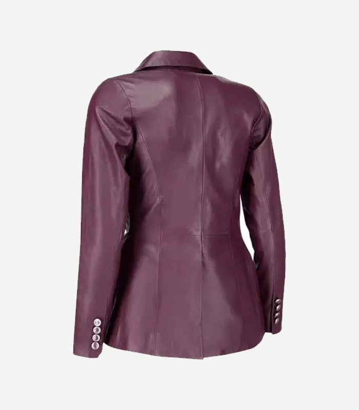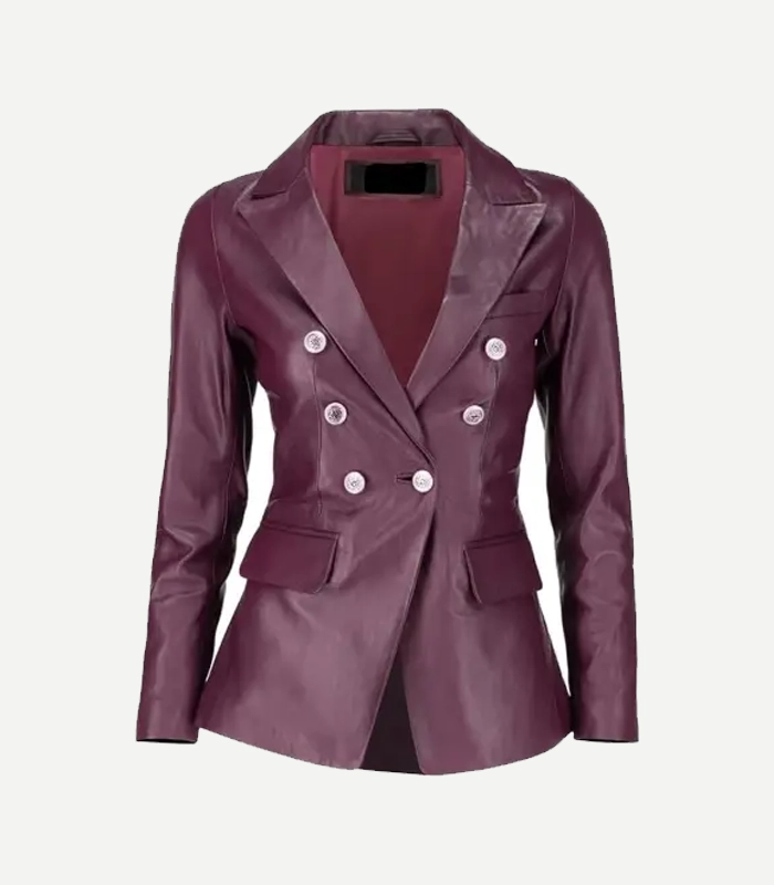 Womens Double Breasted Fancy Burgundy Leather Blazer