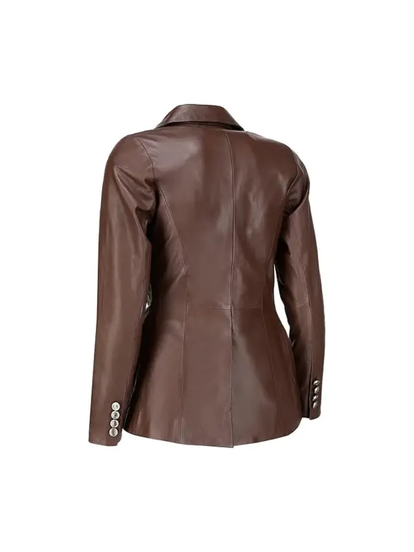 Womens Double Breasted Fancy Dark Brown Leather Blazer
