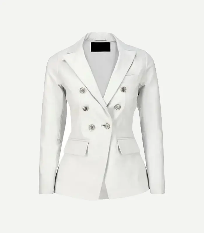 Be the first to review “Womens Double Breasted White Leather Blazer” Cancel reply