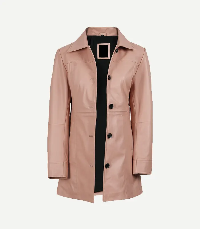 Womens Pink Leather Car Coat
