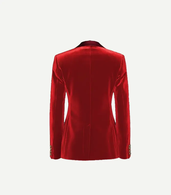 Womens Red Cotton Velvet Tuxedo With Peak Lapel Collar