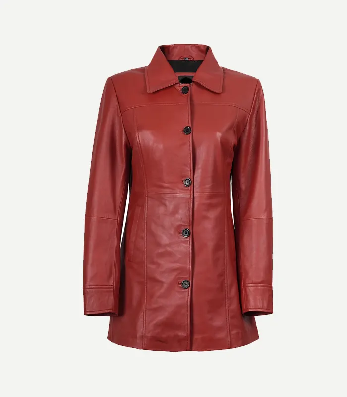 Womens Red Leather Car Coat