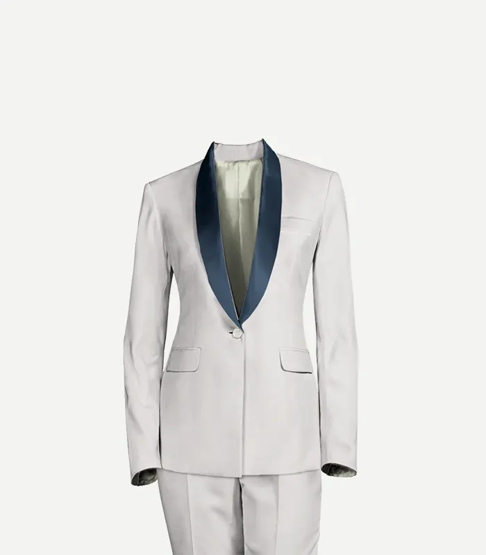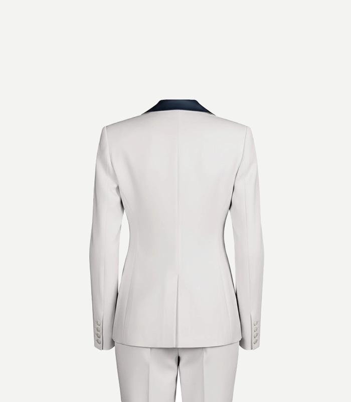 Womens White Tuxedo With Navy Blue Shawl Lapel Collars